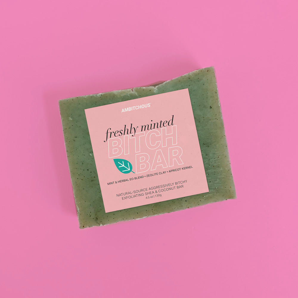 Aggressively scrub & rejuvenate skin with this “pretty Bitchy” exfoliating bar. Remove dull, dry layers to reveal the look of softer, smoother-looking skin underneath. Not your average exfoliator: she’s a real Bitch!